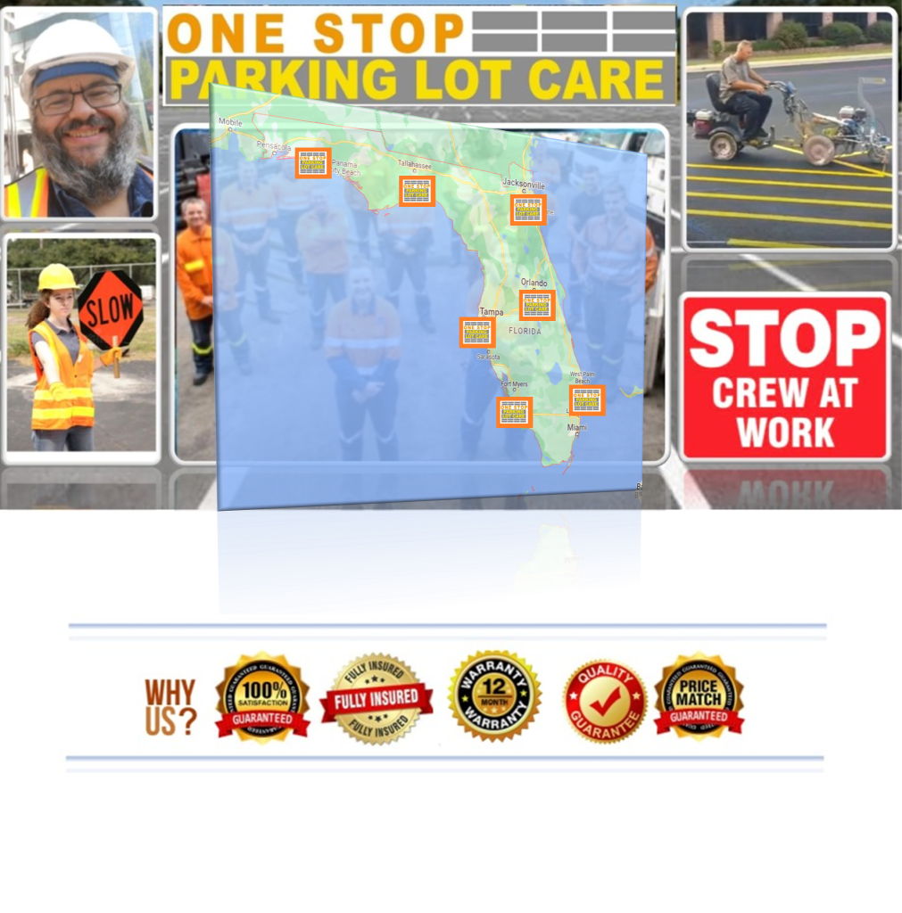 We serve the entire state of Florida, including Miami, Orlando, Tampa, Jacksonville, St. Petersburg, Tallahassee, and beyond. Our multiple locations throughout the state allow us to easily address your parking lot needs.